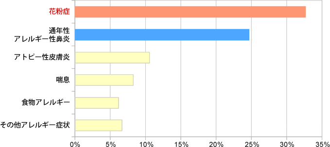 このアンケート結果を見れば、3人に1人が花粉症で、多くのアレルギーの中で花粉症の子供さんが多いという結果が出ています。(ロート製薬によるアンケート結果)