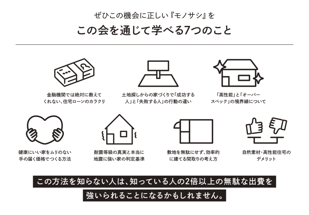家づくりで誰もが必要な知識を1日で整理できる会