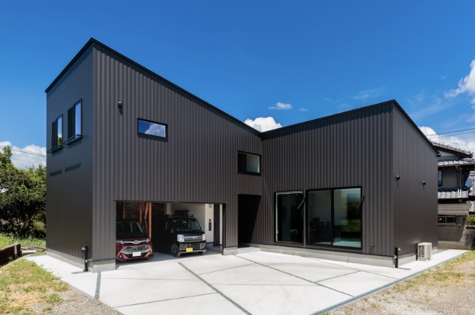 自然に囲まれたインナーガレージのある平屋暮らし…